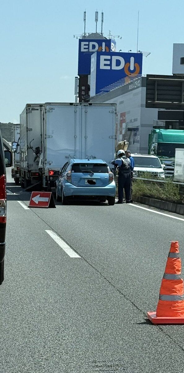 【現場の様子】#交通情報 国道2号線 岡山県倉敷市笹沖付近 大型トラックや乗用車ならからむ追突事故で規制渋滞8月19日 #岡山 #倉敷