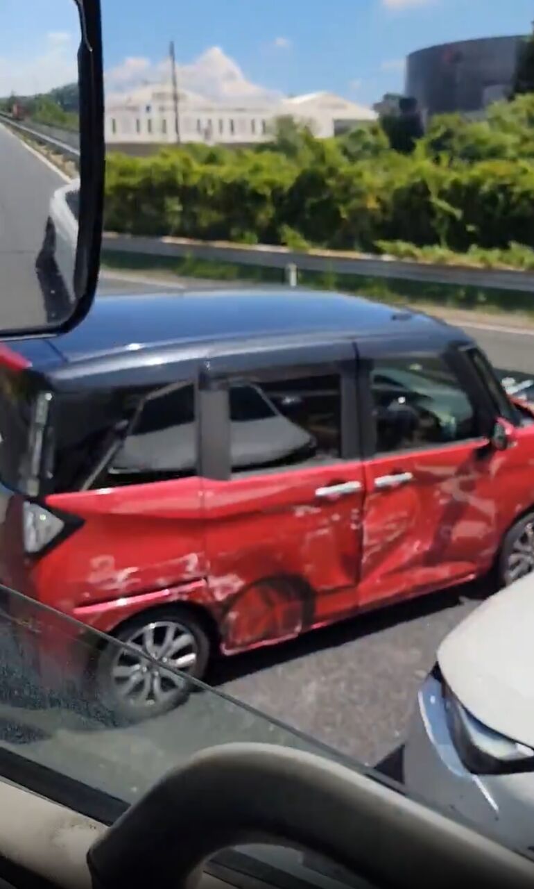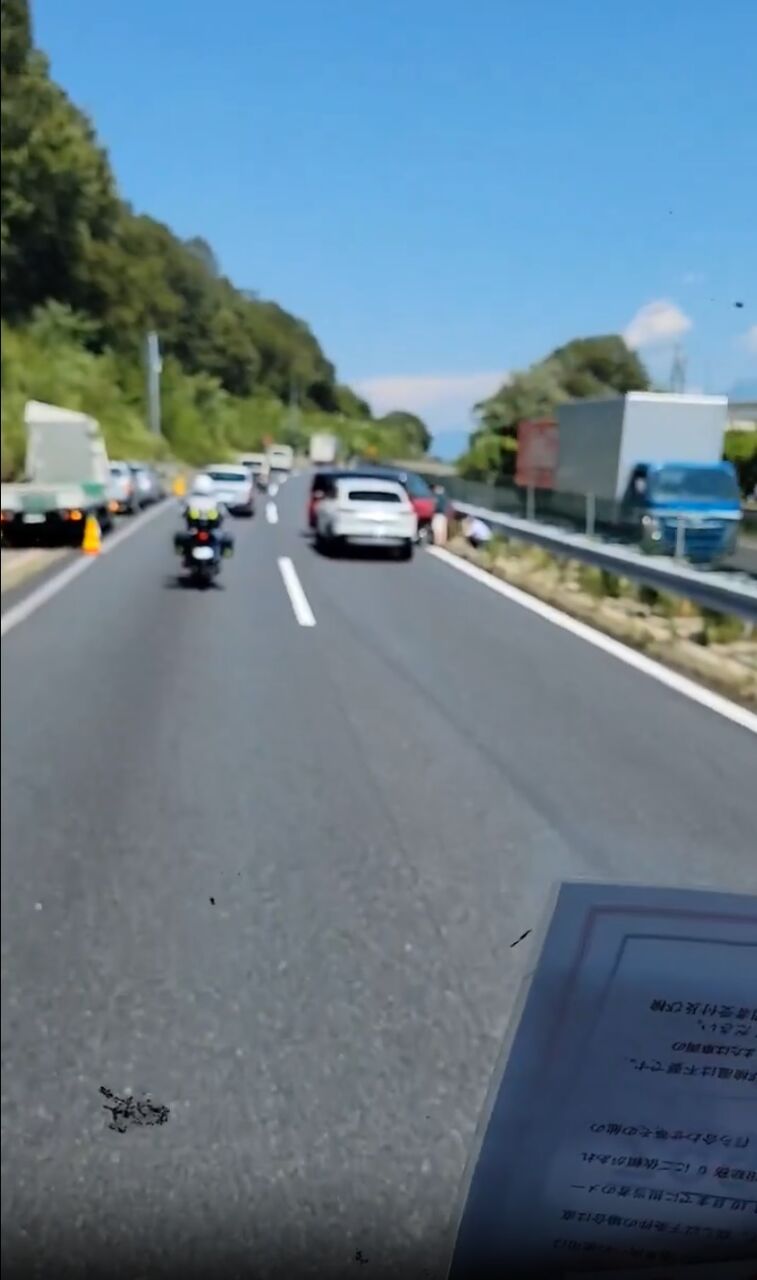 【現場の様子】#交通情報 中央道 上り東京方面 恵那IC付近 車線塞ぐ乗用車衝突事故で交通規制8月20日 #中央道 #岐阜