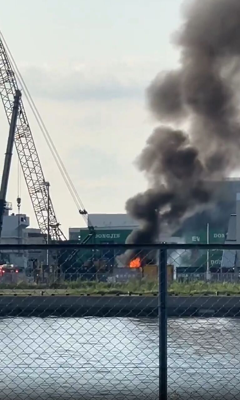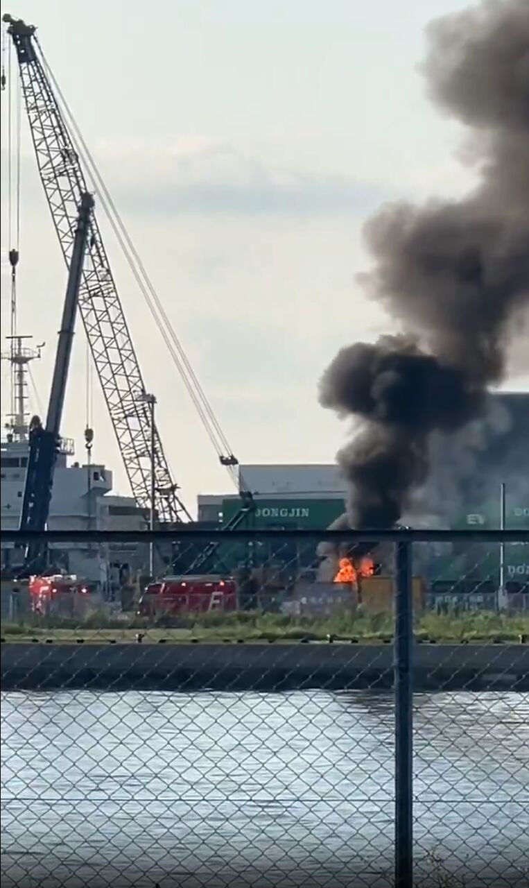 【火事情報】福岡県福岡市東区みなと香椎1丁目 アイランドシティ付近 黒煙と炎あがる車両火災8月21日 #福岡 #香椎 #火災