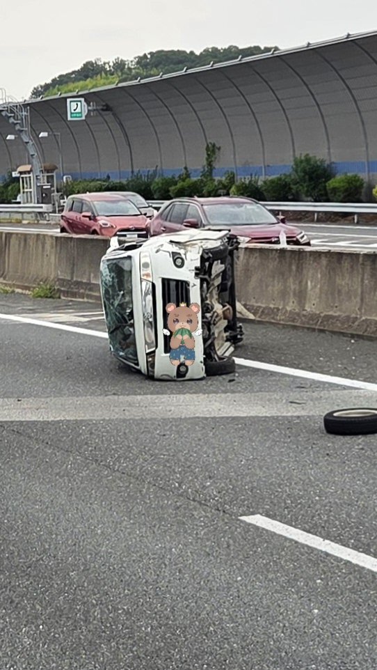 『茨木〜高槻横転車が追い越し車線にいます。通る予定ある方、ご注意ください😌』