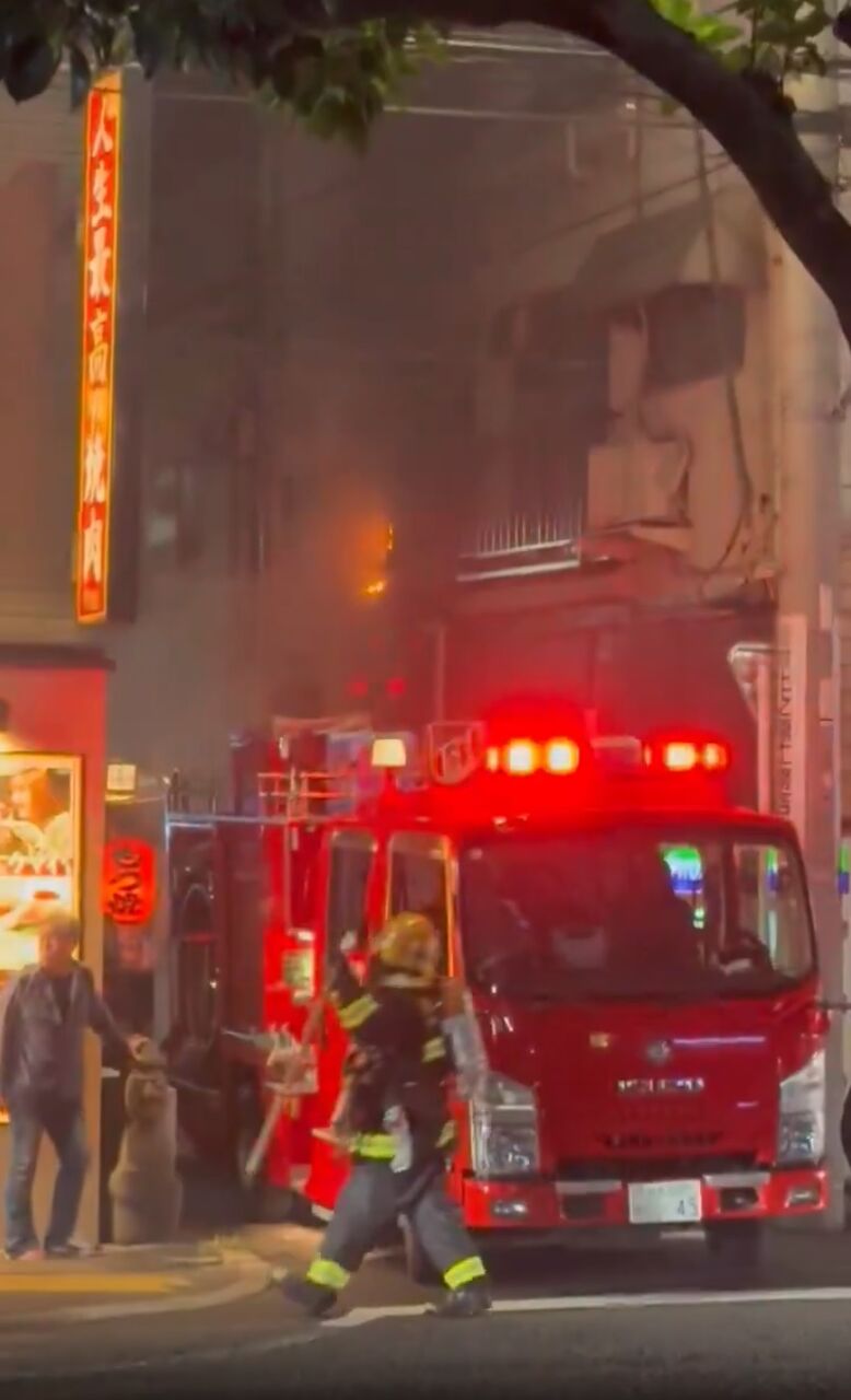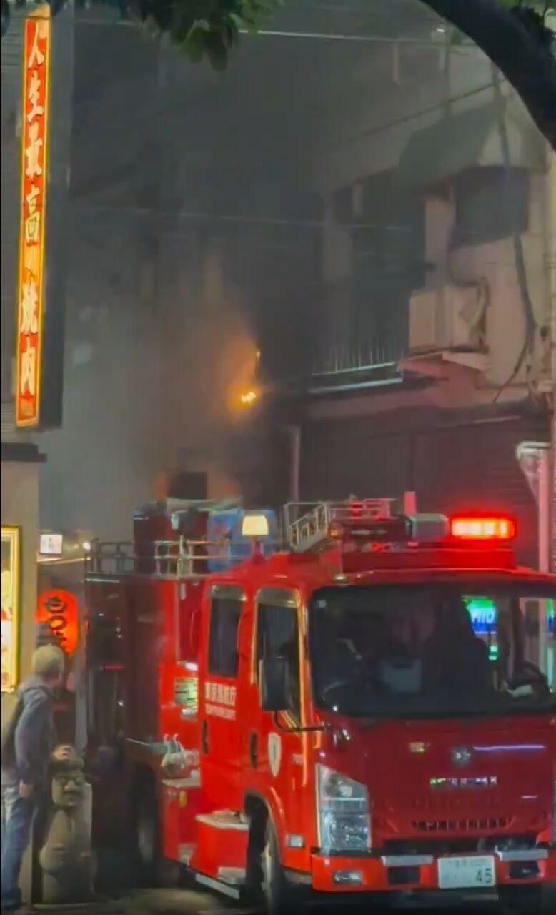 【火事情報】東京都文京区千駄木2丁目 千駄木駅南側 不忍通り沿い付近 建物から炎と煙あがる火災8月23日 #文京区 #千駄木 #火災