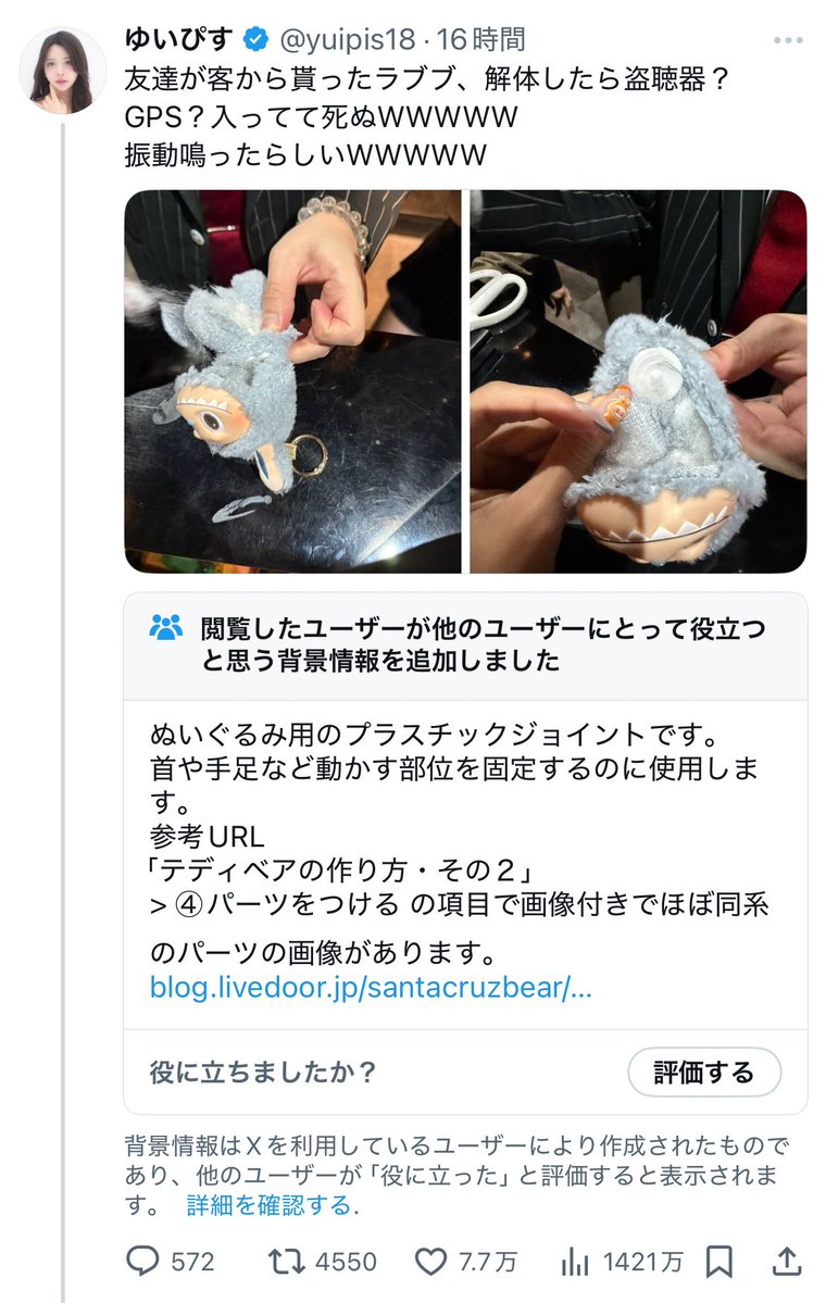 【画像】女さん「友達が貰った人形に盗聴器?かGPS?入ってて死ぬw」 男さん「あの…」 2025/8/25 速報 2: document.write(” + ”); 関連記事 【終了】日本政府、うっかり3ヶ月間裁判を盗聴していた事が判明 【終了】日本政府、裁判所で違法な盗聴をしていた…「手違い」と説明するも常習犯だったことが発覚 【悲報】ロシア軍の通信、駄々漏れ。アマチュア無線家に盗聴され5chに実況スレまで立つ始末 document.write(” + ”); 続きを読む ——— Source: アルファルファモザイク 【画像】女さん「友達が貰った人形に盗聴器?かGPS?入ってて死ぬw」 男さん「あの…」