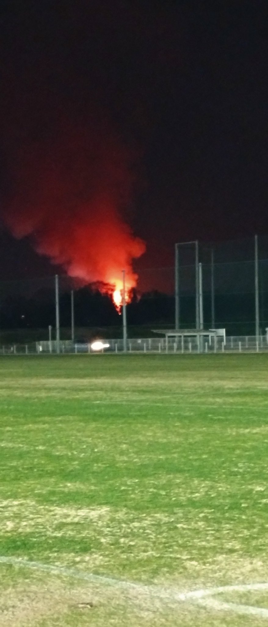 携帯のひどい写真だけど、高速の向こうで火事だわ。