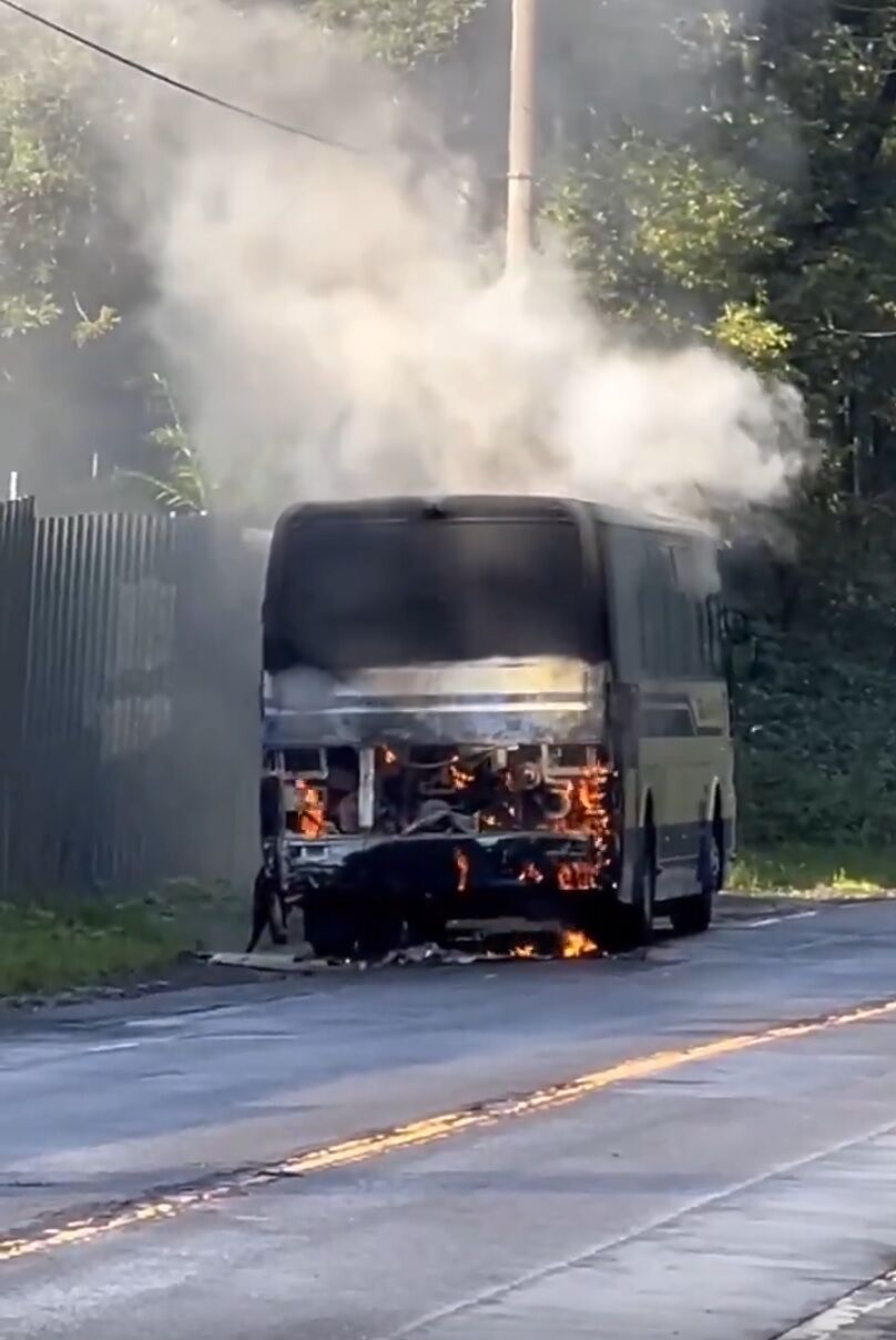 『支笏湖から札幌向かう途中で、バス燃えてた🚎』
