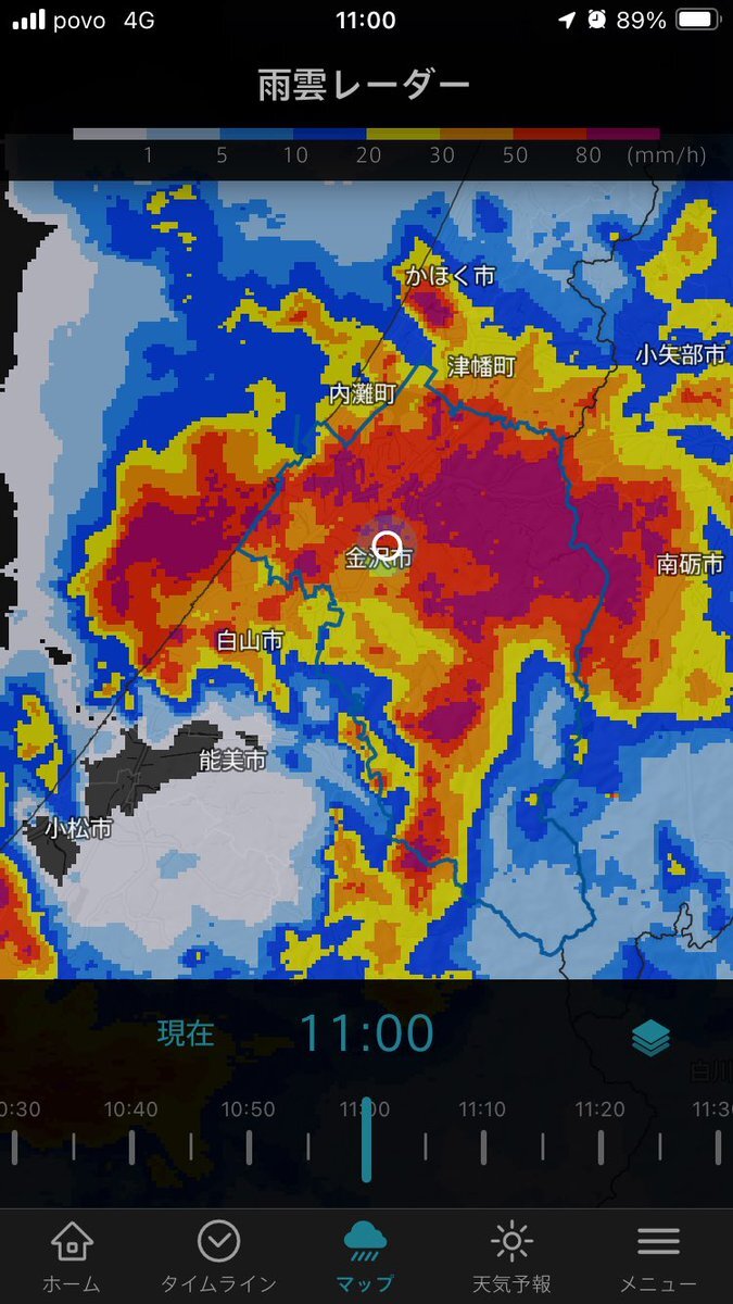 金沢市に大雨警報発令。