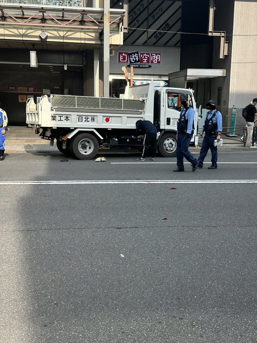 『お仕事で初亀戸来たら、駅降りて早々事故現場の血溜まりに遭遇してヒエってなった』