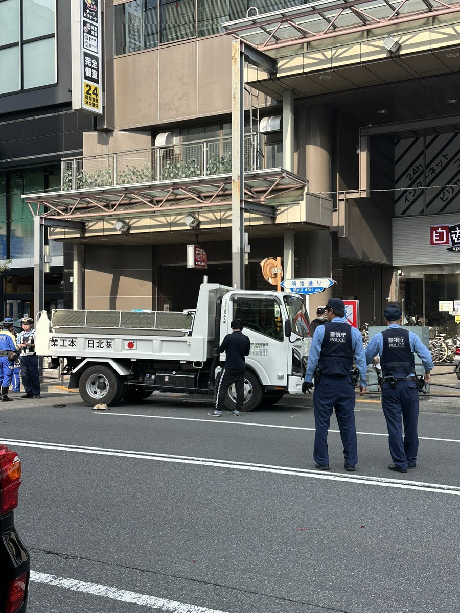 【現場の様子】#交通情報 明治通り 東京都江東区 #総武線 亀戸駅前付近 トラックとバイクの人身事故で一時通行止め渋滞8月27日 #江東区 #亀戸