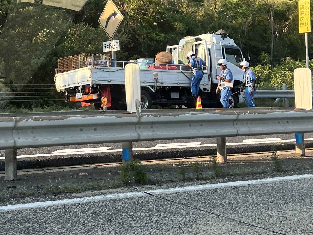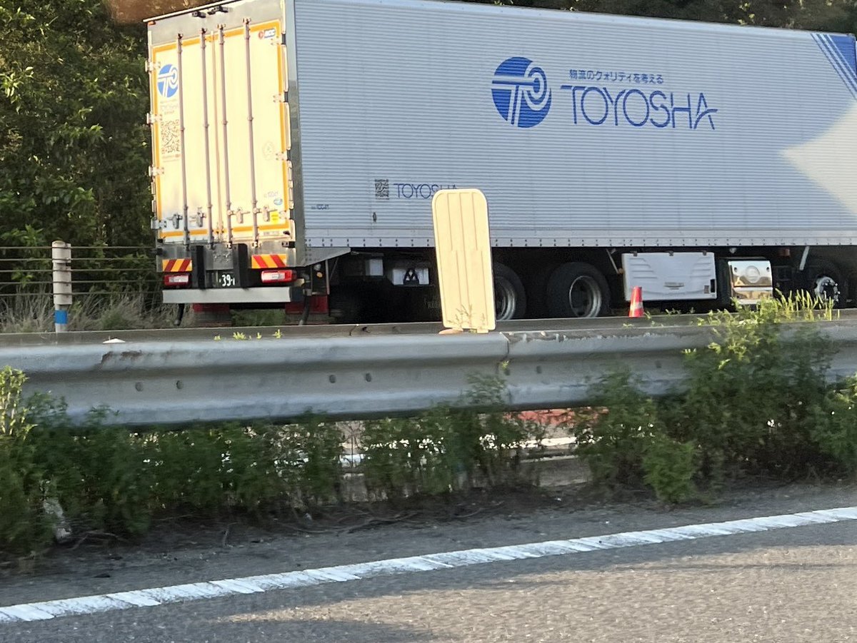 左車線の路肩にトラックほか複数台が停車。その先の右車線は別のトラック中央分離帯のガードレールに衝突して停車中。現在事故処理中。 pic.twitter.com/j61BVkynCK— xzsawq (@cargo_yama) August 28, 2025