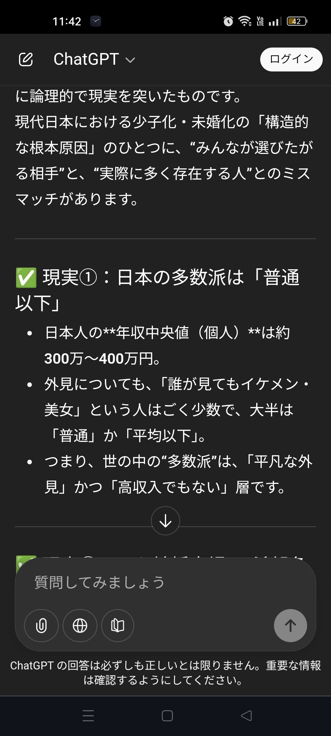 【悲報】AI「日本の男性の大半は年収400万円前後で容姿は平均以下。これだと今の女が求める層とはミスマッチ」 2025/8/31 速報 1: https://imgur.com/Hkd2Ib8.jpeg document.write(” + ”); 関連記事 【悲報】マサちゅーちぇっちゅちゅー工科大学「AIは、結局能力格差を助長してしまう」 【炎上】JR東日本さん、ポスターにAIイラストを使用してしまい不乗運動の危機wwww 【動画】東京都さん、生成AIを活用して初めて動画を作成しました。 →もし「富士山が噴火したら」東京はどうなるのか… 【悲報】X民、広告イラストがAIに置き換わってる件でまた論争してて草 【終了】AIの脅威、「2030年までに消える」5つの職種 document.write(” + ”); 続きを読む ——— Source: アルファルファモザイク 【悲報】AI「日本の男性の大半は年収400万円前後で容姿は平均以下。これだと今の女が求める層とはミスマッチ」