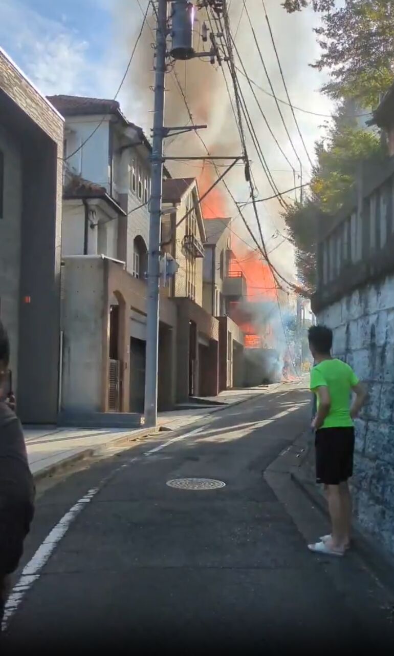 【火事情報】東京都目黒区中目黒3丁目 中目黒八幡神社付近 住宅街建物から炎と煙あがる火災9月2日 #目黒 #渋谷 #中目黒 #火災