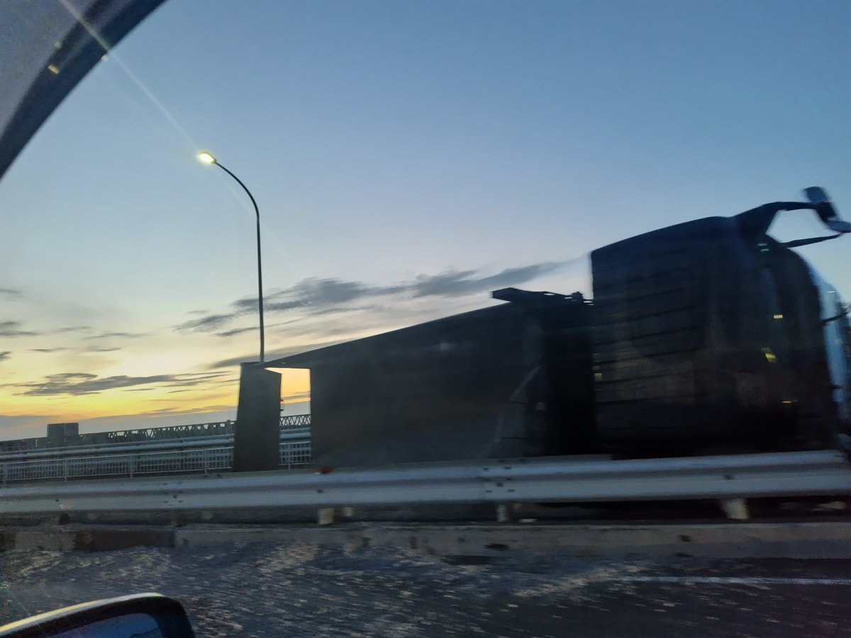 【現場の状況】#交通情報 国道6号線 上り東京方面 茨城県取手市~千葉県境 大利根橋付近 積荷砂利散乱するダンプ横転事故で一時通行止め渋滞9月3日 #茨城 #取手 #我孫子
