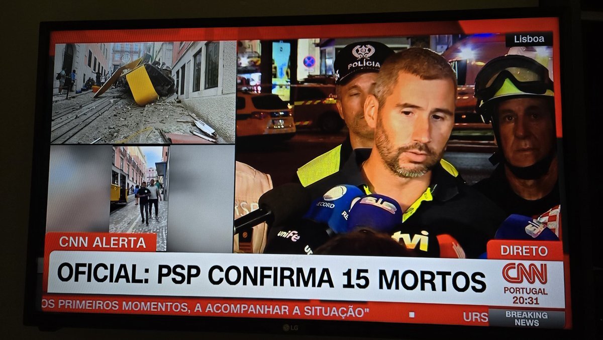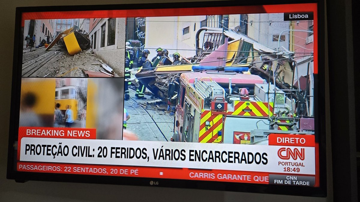 『リスボンの最も観光客が多く利用するケーブルカー、グロリア線下りが脱線して建造物に激突。多くの乗客が大破した車両の下敷きになっており、現在も救出作業中。重症者五名の他にすでに三名の死亡が確認されているが、犠牲者は最終的に十名以上に上る可能性があると言われている』