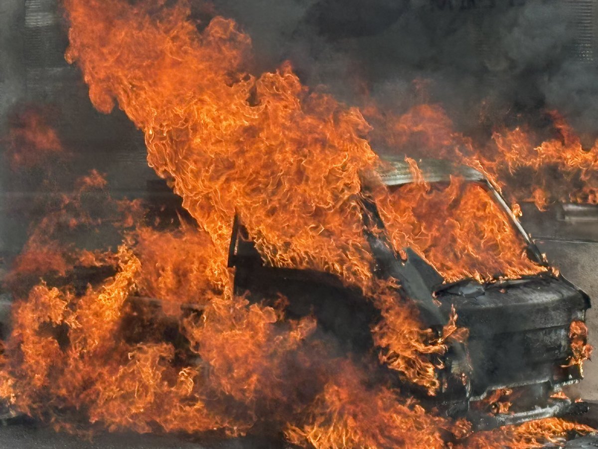 『近畿道で車燃えてる今、塀挟んで真隣なんやがw』