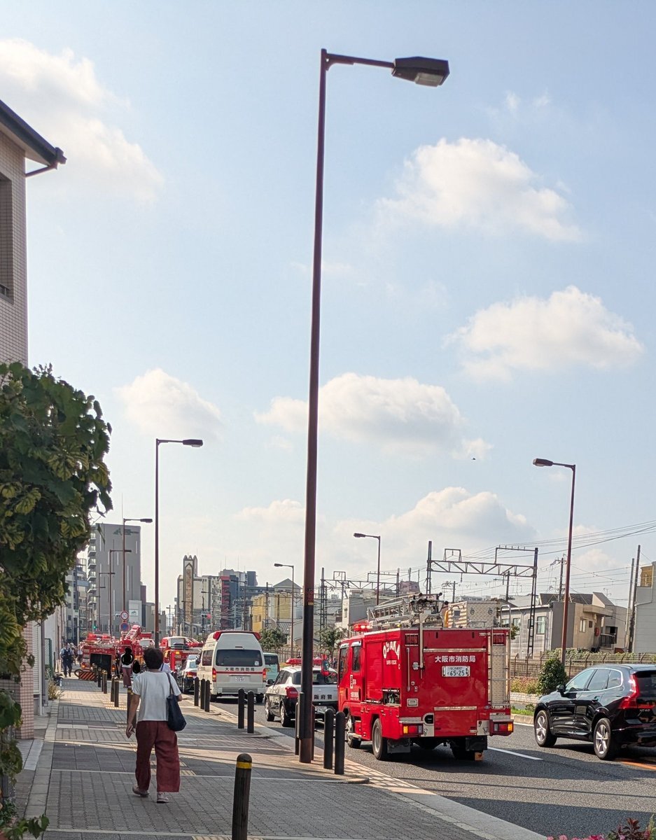 2025年9月8日 午前8時すぎごろ 大阪府大阪市西成区潮路2丁目付近に消防車が出動している目撃情報が寄せられた。