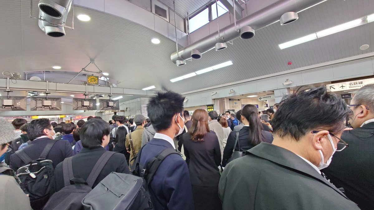 【現場の状況】『金山が新社会人のやる気を削いでる』#東海道線 金山駅が帰宅ラッシュ入場規制カオス状態 #名鉄名古屋線 人身事故の影響4月1日 #名鉄 #名古屋 #金山 #新年度