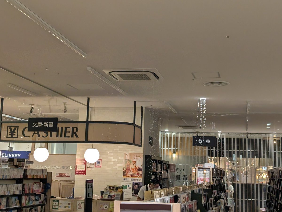 待って新潟駅雷落ちて本屋雨漏れしたっていうのみたけどやばすぎる、あそこの本屋今年できたばっかだぞ