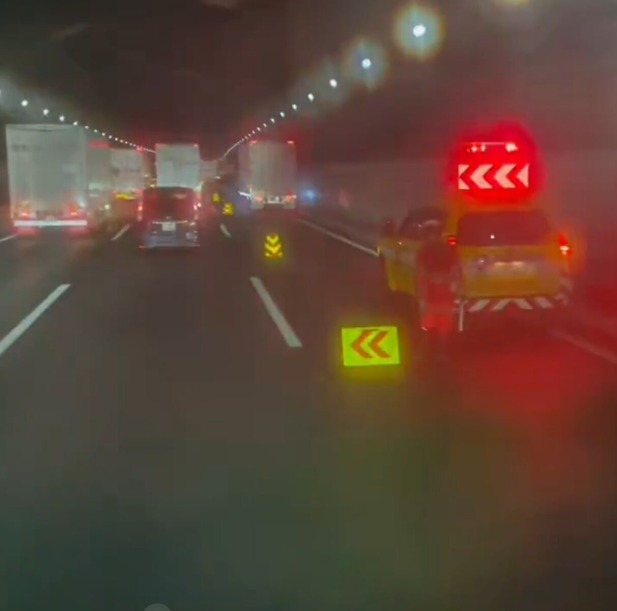【現場の様子】#交通情報 東名高速 上り 足柄スマートIC~大井松田IC 都夫良野トンネル内 トラックと乗用車の衝突横転事故で規制渋滞9月11日 #東名 #鮎沢 #大井松田