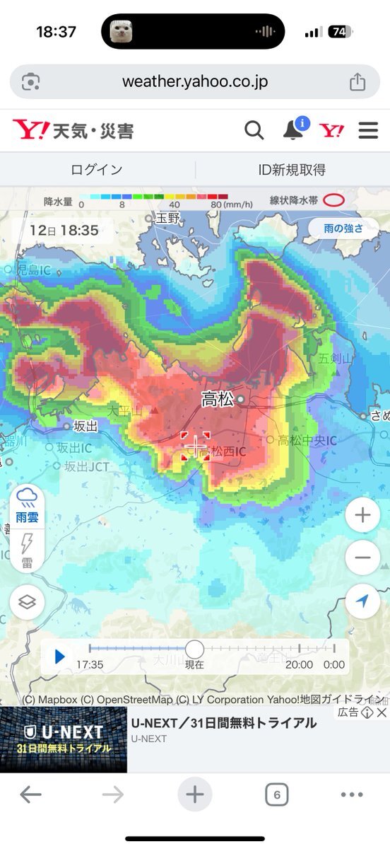 高松ゲリラ豪雨と雷すごいんだが
