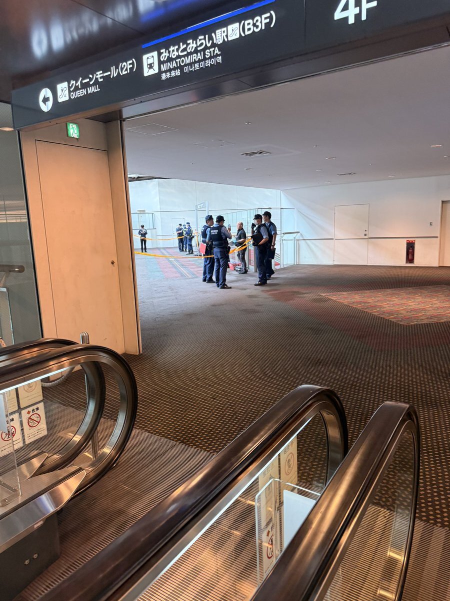 みなとみらい駅の上のフロアでエスカレーター脇の踊り場で転落事故?