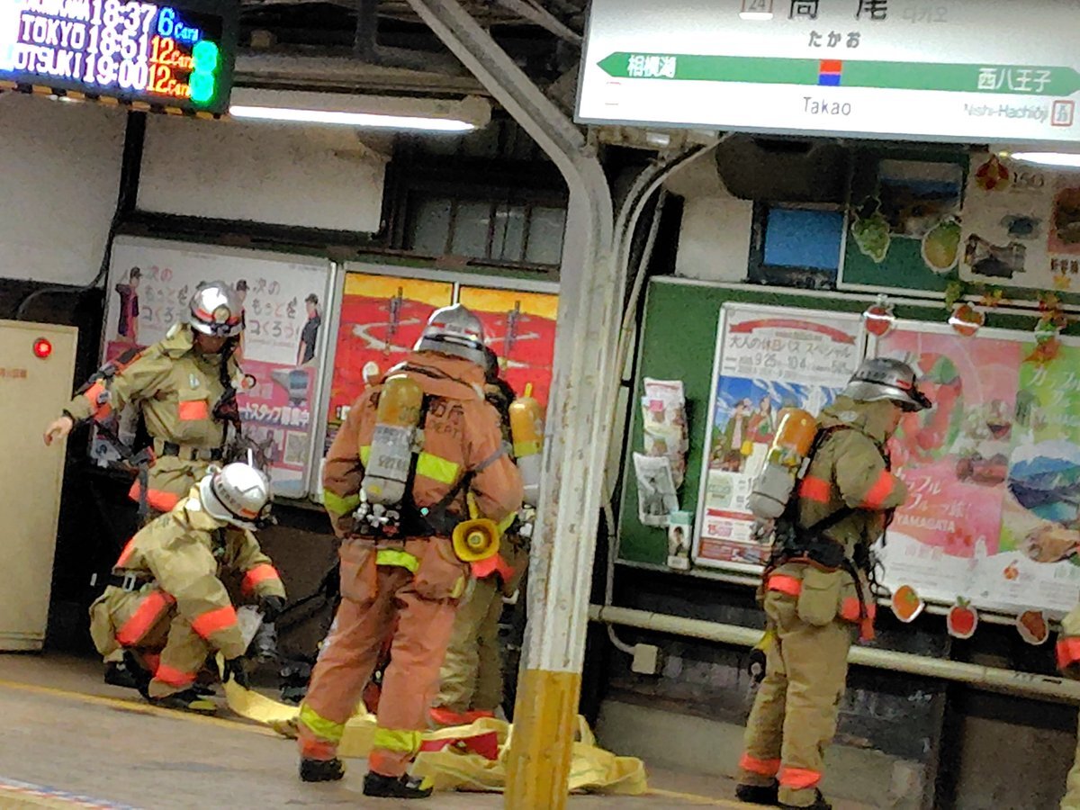 高尾駅付近に消防車とかパトカーがめっちゃいるけど何ですかこれ