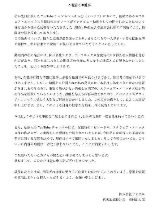 元ドラクエプロデューサー「会社辞めたから色々ぶっちゃけるでw」ペラペラ →結果 2025/9/14 速報 1:名無しさん@おーぷん びっくりするくらい怒られたみたいで草 document.write(” + ”); 関連記事 【緊急】元スクエニ社員「ドラクエはもう40代以上のおじさんしかやってない」→動画削除wwwwwwwwwwwwwwwwwwwwwwwwwwwwwwww 【朗報】中川翔子さん、無事通常運転「双子ってドラクエ5みたい」 【朗報】ドラクエコラボホテル、部屋から持って帰ってもいいものがすごいwwww 【地獄】ドラクエ動画界隈の民度がヤバ過ぎると話題にwwww 【公開処刑】ドラクエIIIリメイク最大の問題点、“ラーミヤが遅い”というのはアンチのデマだったwwwwwwww document.write(” + ”); 続きを読む ——— Source: アルファルファモザイク 元ドラクエプロデューサー「会社辞めたから色々ぶっちゃけるでw」ペラペラ →結果