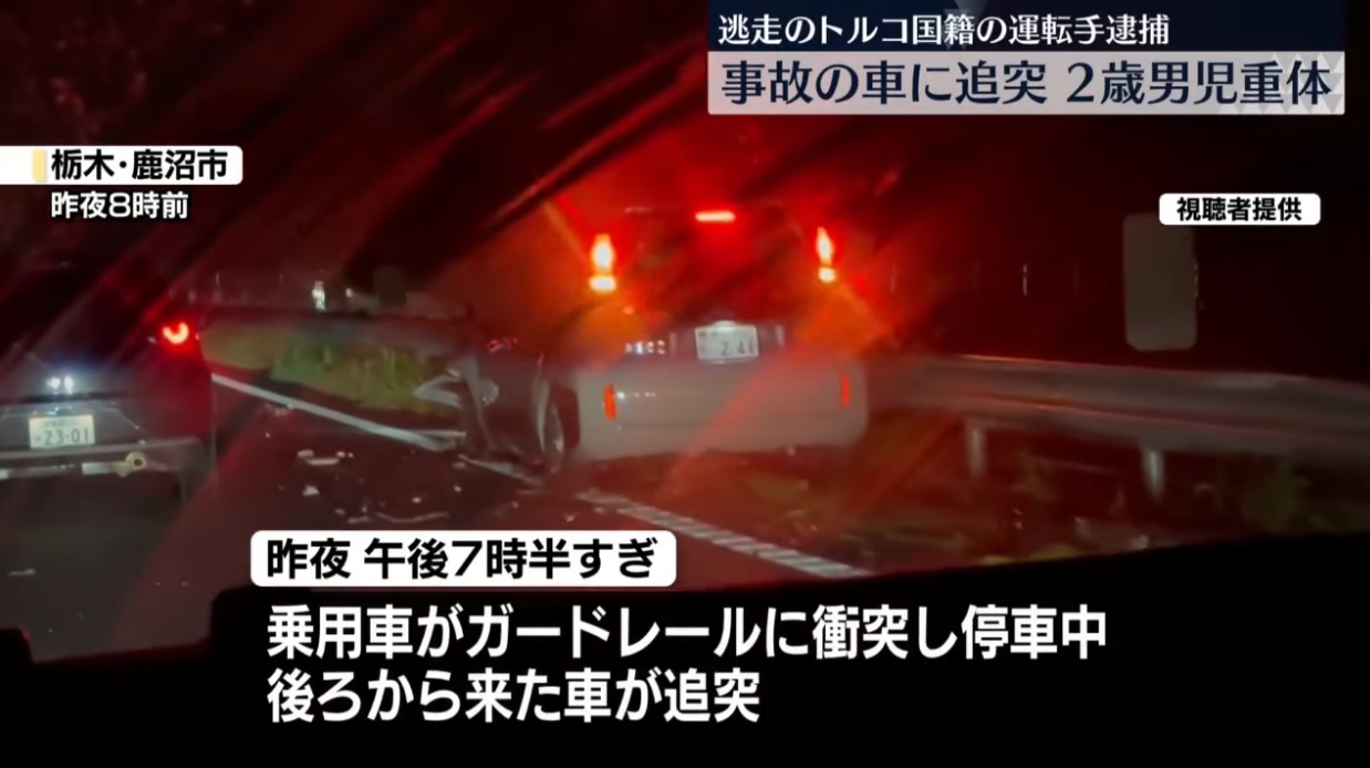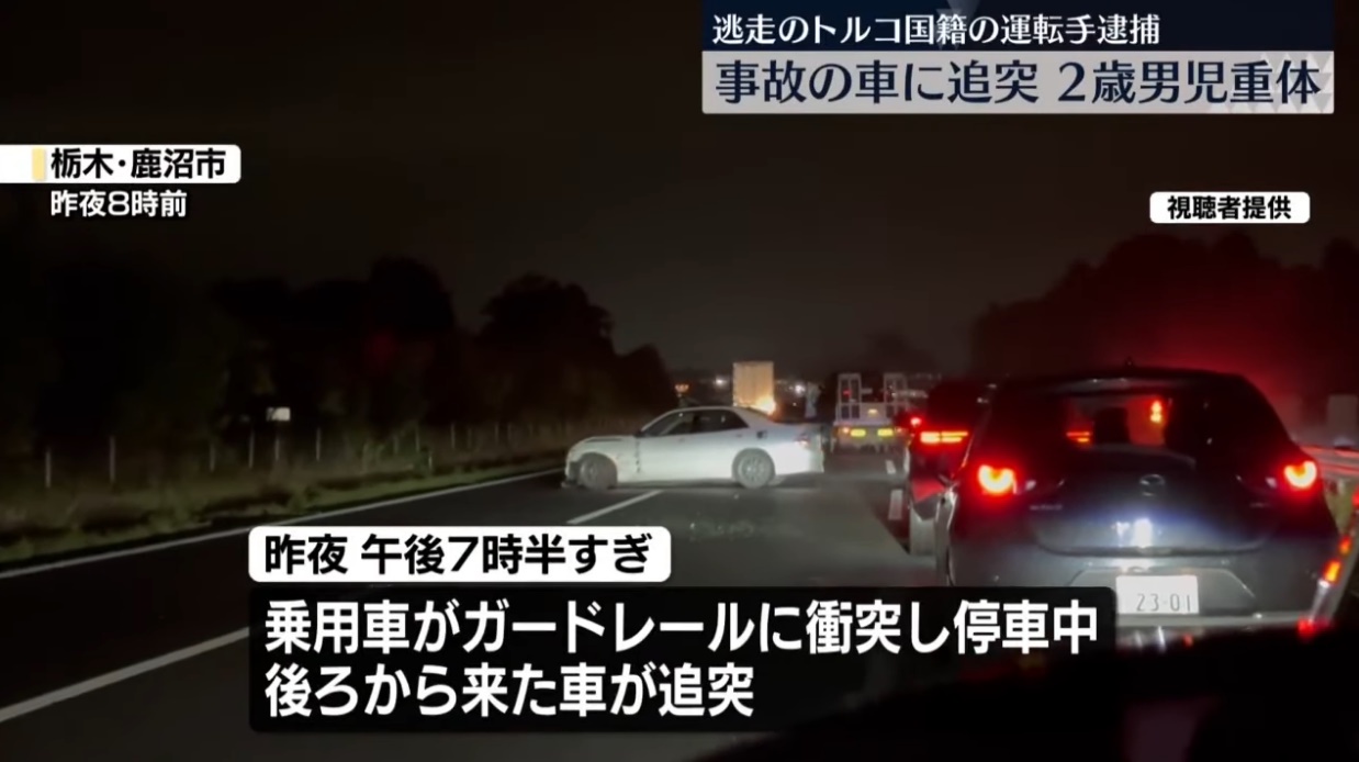 ・13日夜、栃木県鹿沼市の東北自動車道で単独事故を起こした乗用車に別の車が衝突し、後続車の家族3人がけがをして、2歳の男の子が頭を強く打ち意識不明の重体となった。