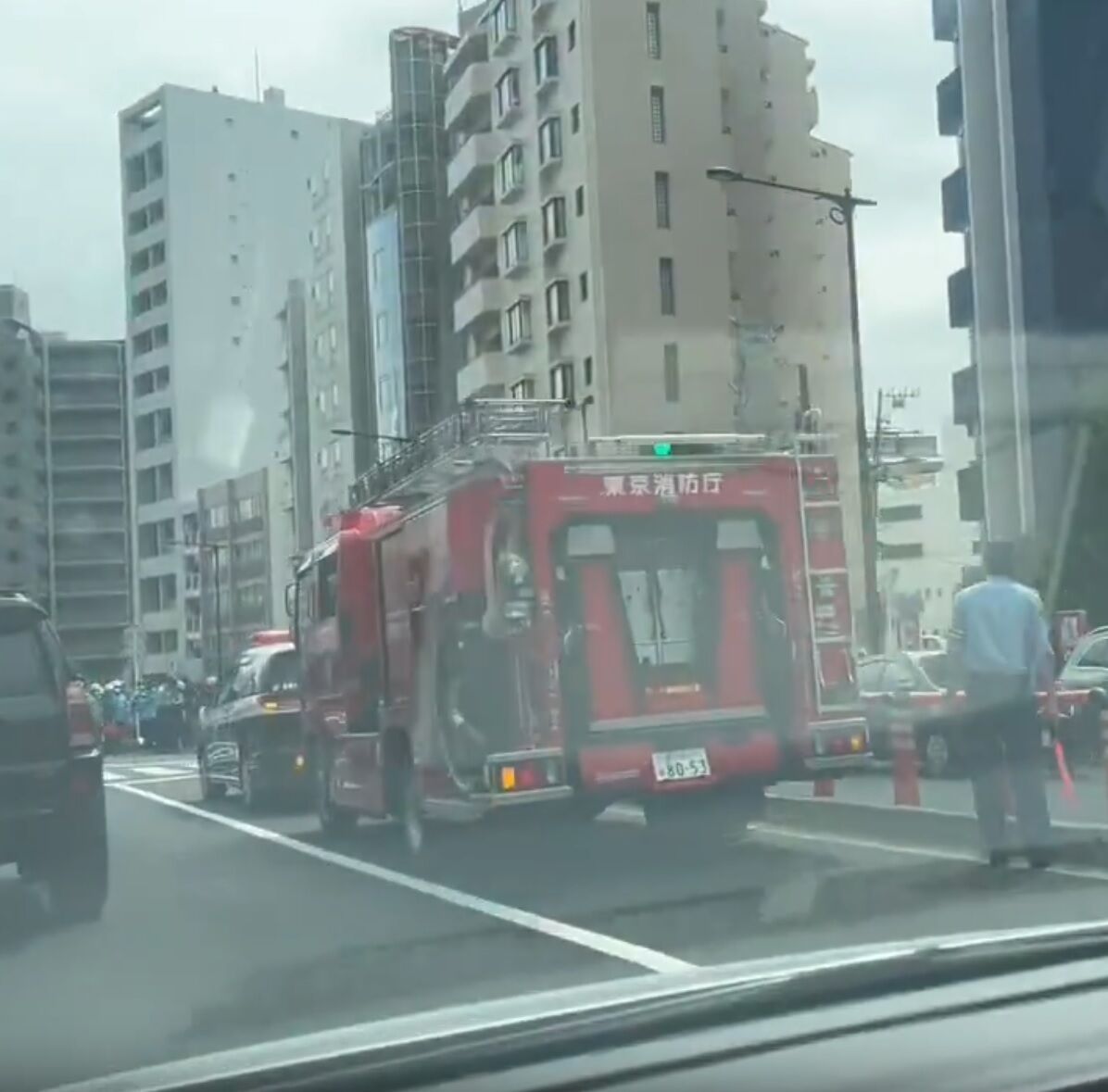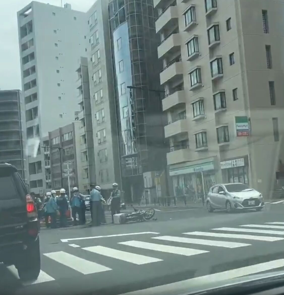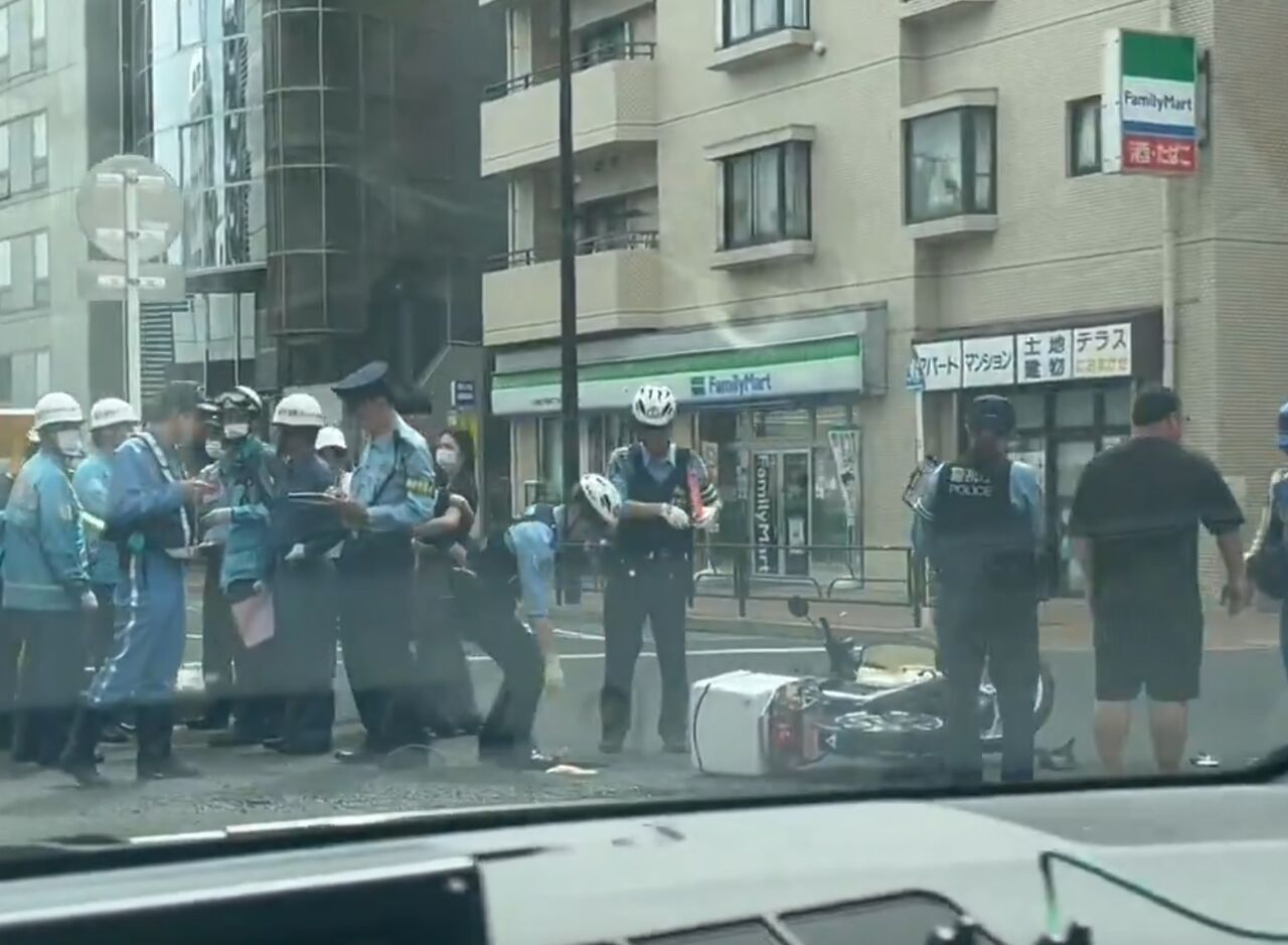 『目黒不動の交差点あたりで車と配達員が事故してて、配達員倒れてた‼️