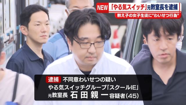 ・東京都中央区の個別指導塾「スクールIE」の元教室長、石田親一容疑者(45)が、授業中に女子中学生の体を触るわいせつな行為の疑いで逮捕された。