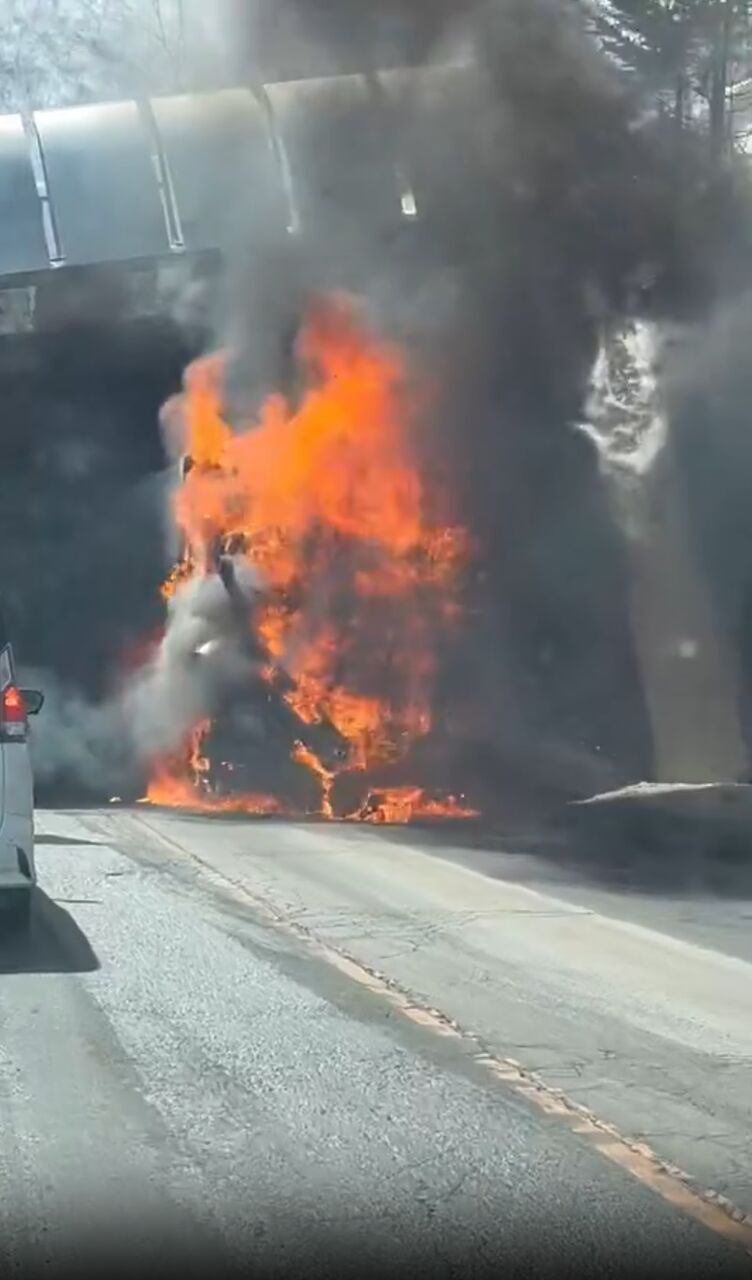【現場の様子】#交通情報 #国道274号 北海道上川郡清水町清水付近 #日勝峠 でトラック燃える車両火災事故4月3日 #北海道 #清水町 #火災