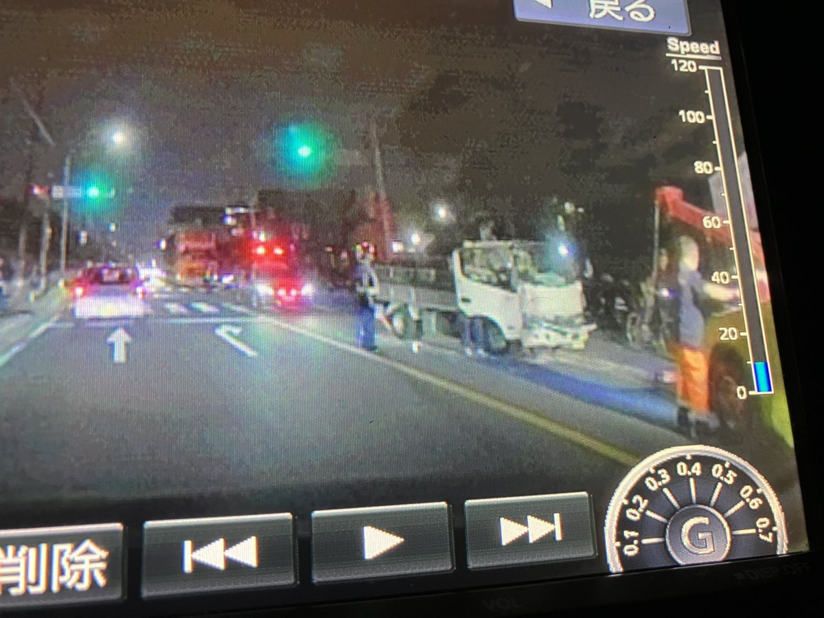 成田街道運輸曲局の前でトラックと乗用車の正面衝突事故。