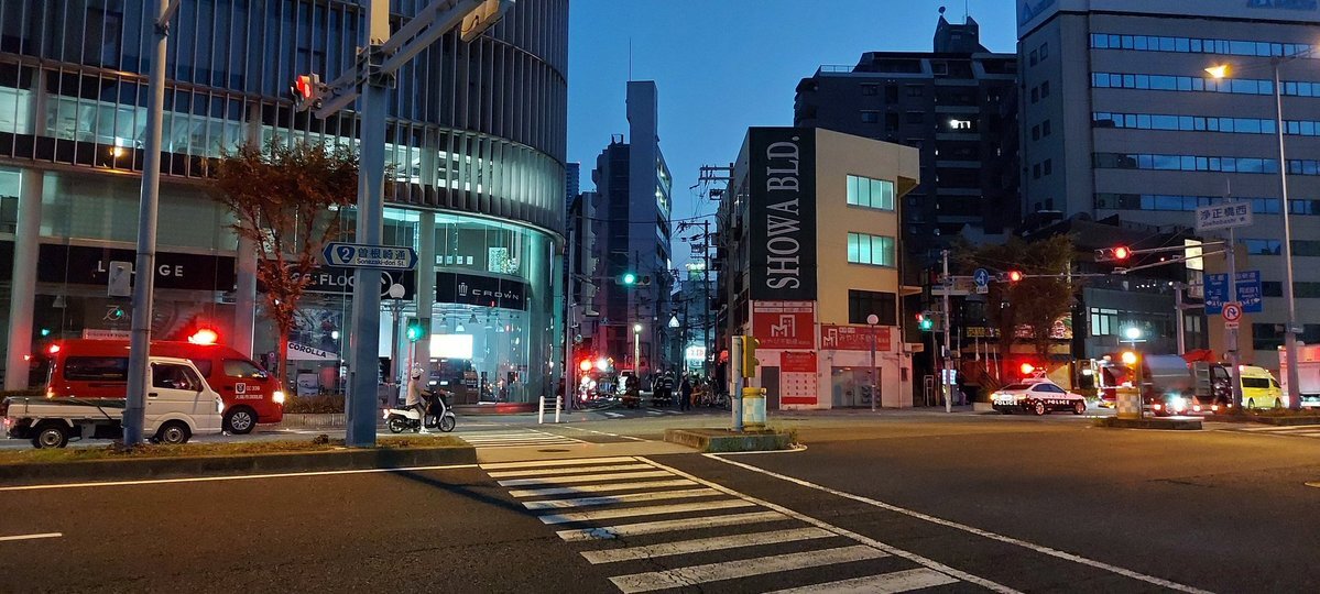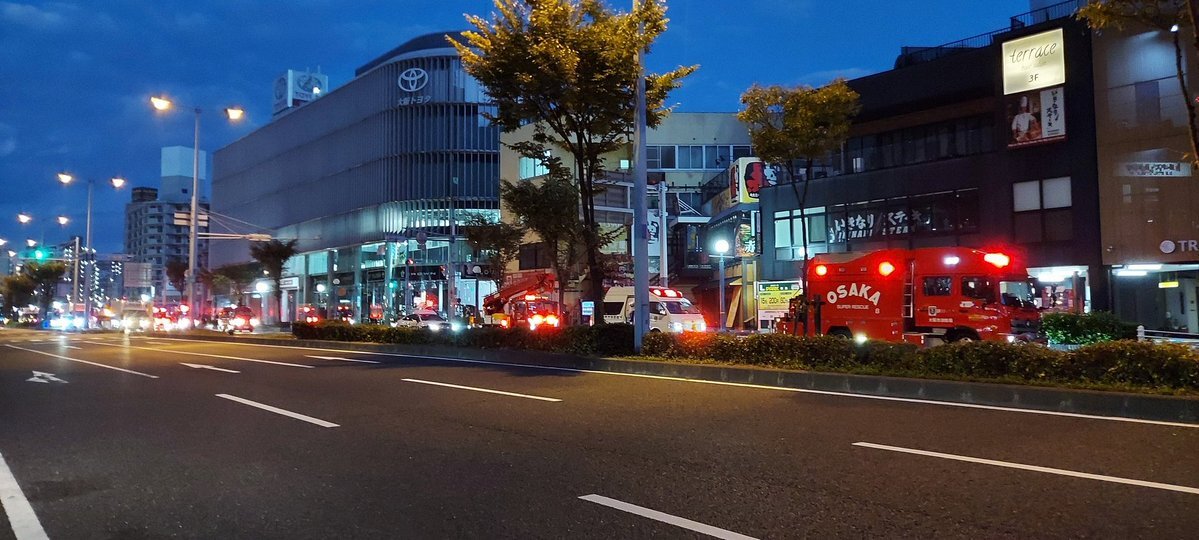 浄正橋西交差点付近に、消防車約10台、大阪ガスの車両、救急車にパトカー停まってる💦 pic.twitter.com/S6mW2SZoz6