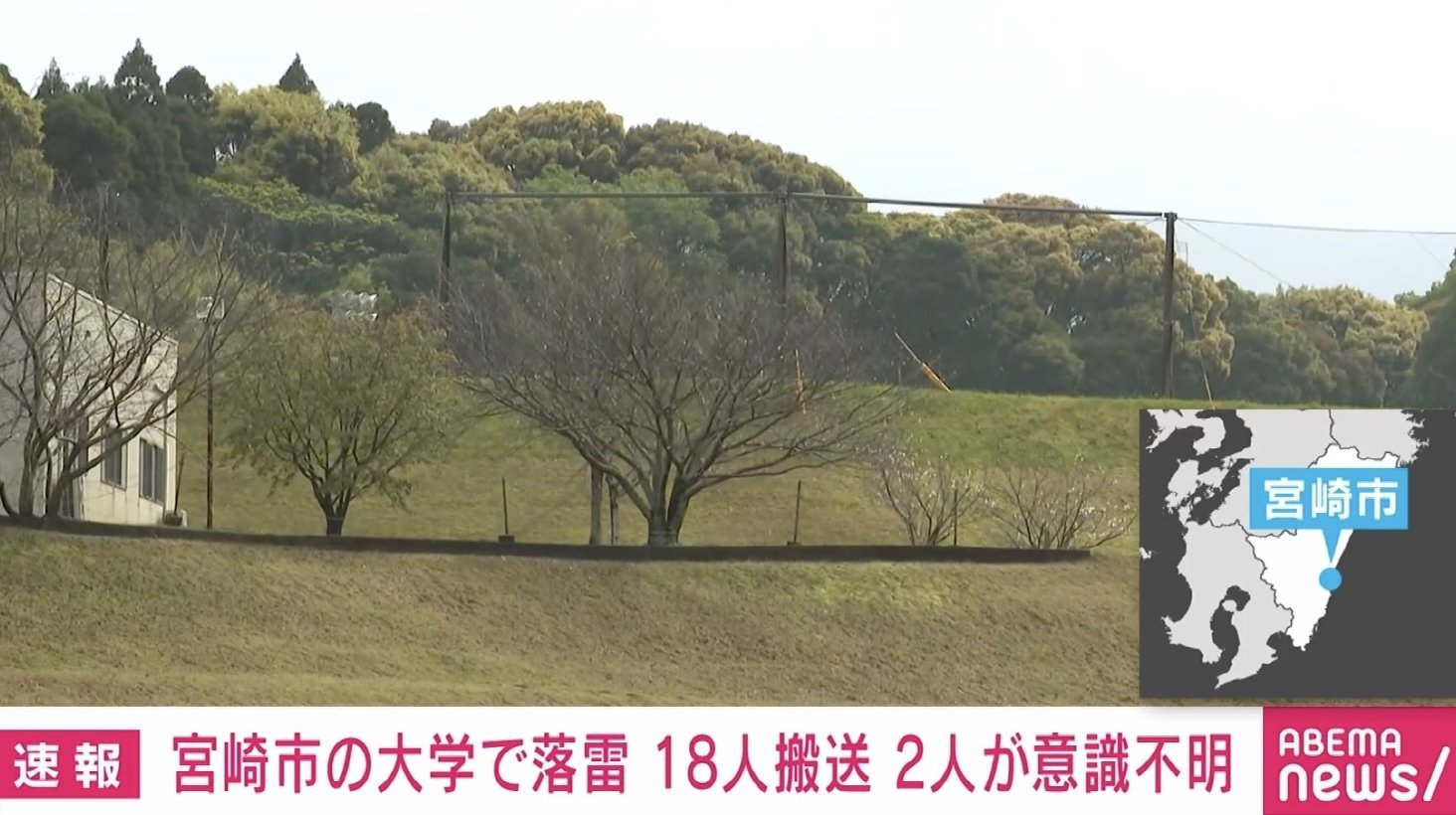 宮崎産業経営大学でサッカーの試合中に落雷があり、高校生2人が心肺停止とみられるという。そのほかにもケガ人が複数いるとみられる。午後4時現在、宮崎県内には全域で雷注意報が発表されている。 pic.twitter.com/fMk3vlpws3