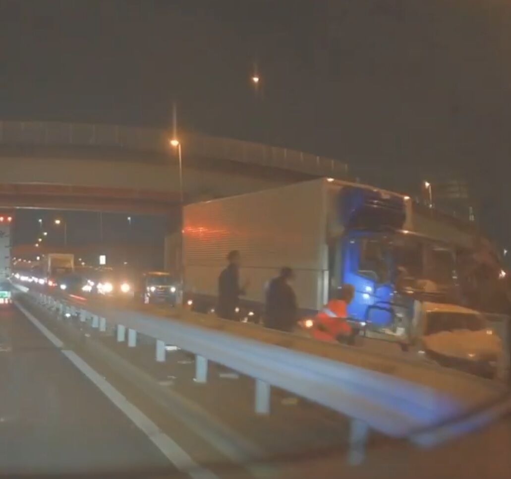 三郷JCTすぎてすぐのところ、円形グルグルしてる辺りの真下くらいで事故ってて車通れなくなってた』