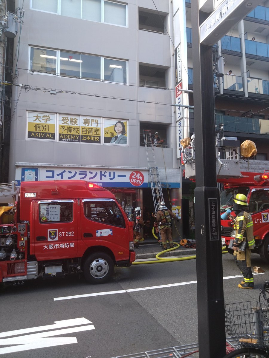 『何事かと思ったら消防士、上本町火事が発生したみたいです』