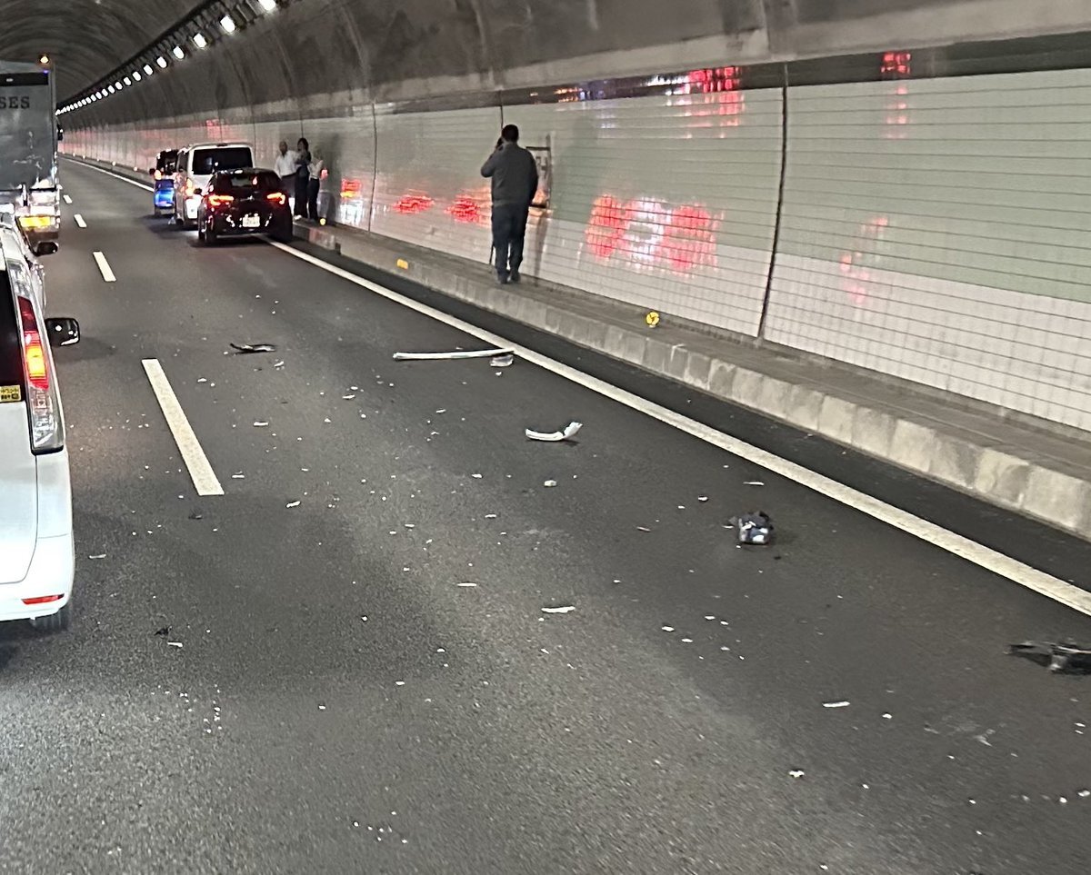 【現場の様子】#交通情報 圏央道 内回り 八王子西IC~八王子JCT 恩方トンネル付近 破片散乱車両3台衝突事故で規制渋滞9月27日 #圏央道 #八王子