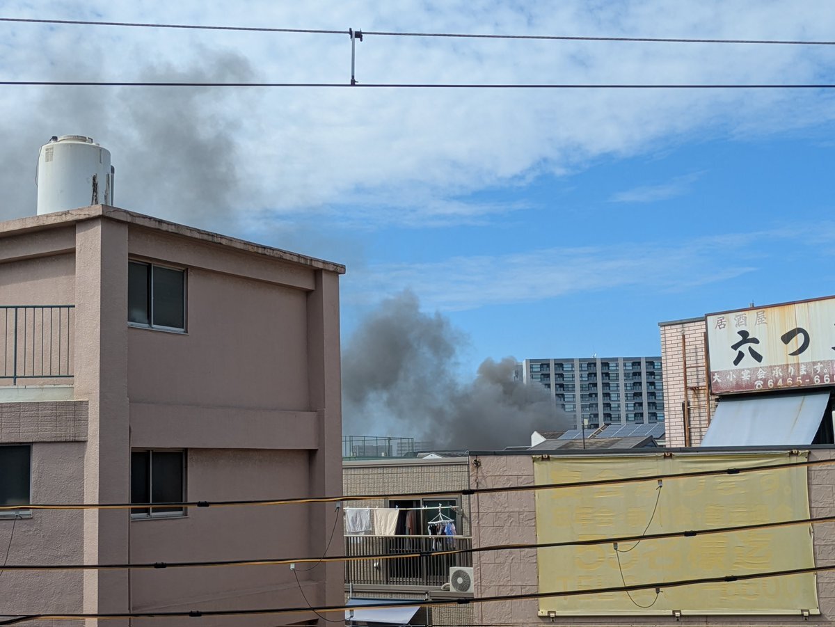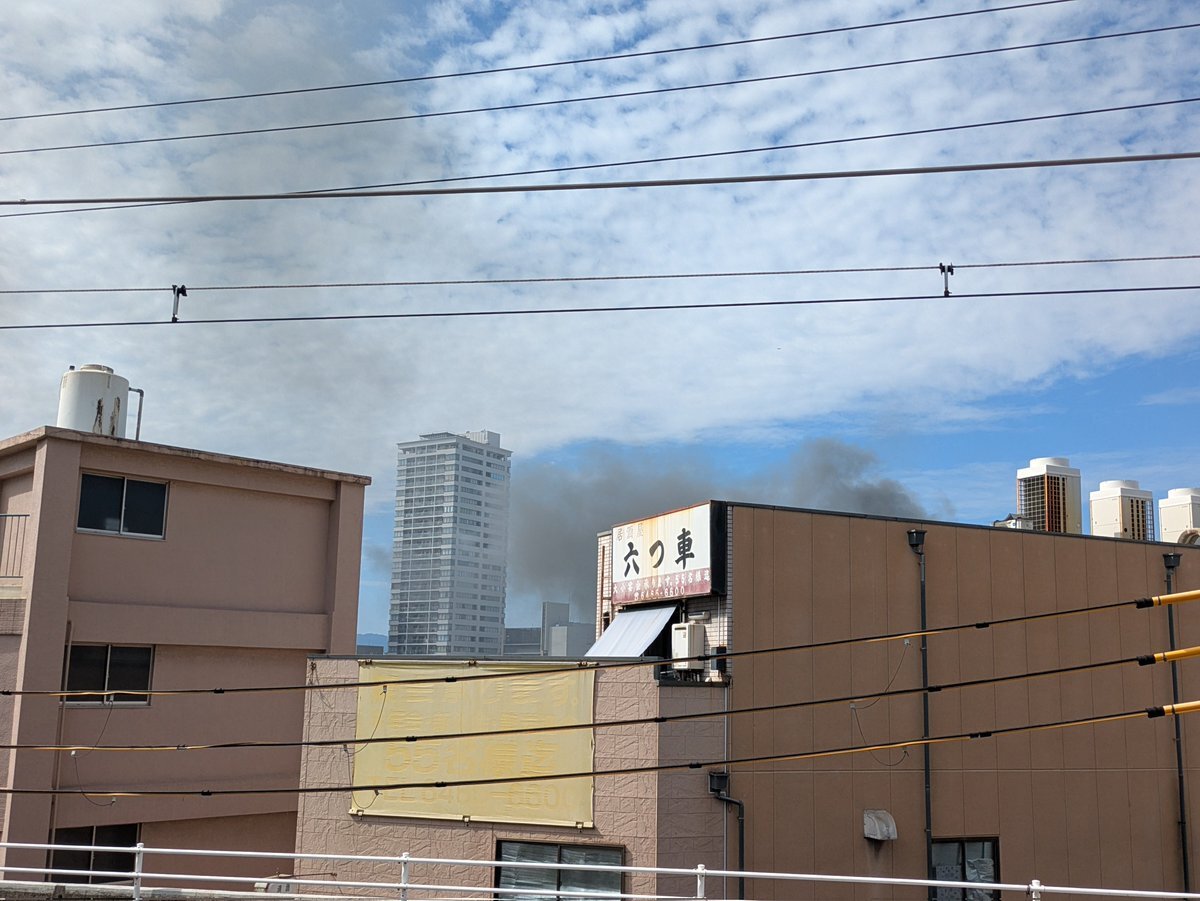 『野田阪神近くで黒煙が上がってる火災?』