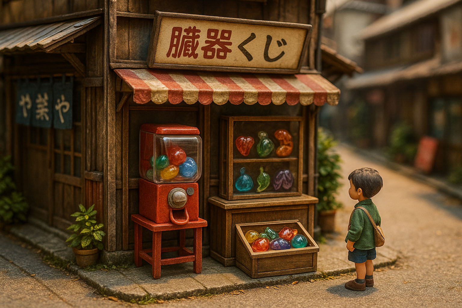 臓器くじによって、くじに当たった一人は死ぬが、その代わりに臓器移植を必要としていた複数人が助かる。このような行為が倫理的に許されるだろうか、という問いかけである。