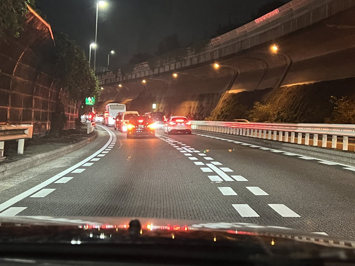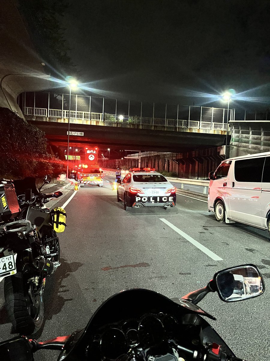 【現場の様子】#交通情報 首都高K3狩場線 下り 永田分流~狩場JCT付近 車線塞ぐバイク事故で通行止め渋滞9月28日 #首都高 #狩場線 #保土ヶ谷