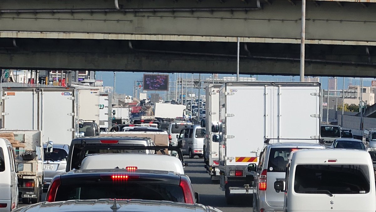 『近畿道上り、東大阪でトラック2台が2車線塞いで事故してるので大渋滞してます⚠️