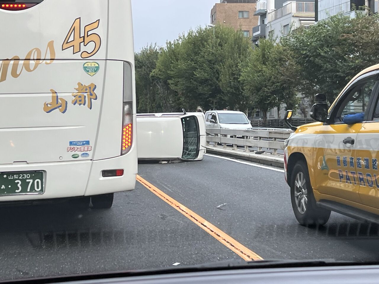 首都高の代々木近辺で車が横転して渋滞しています!