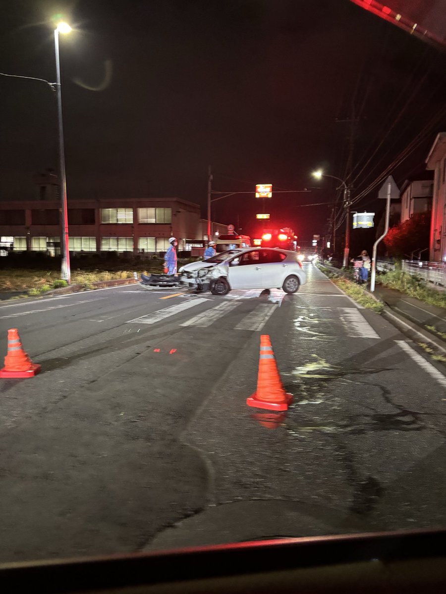 【現場の様子】#交通情報 流山街道 千葉県流山市美原2丁目流山消防署付近 車線塞ぐ乗用車フロント大破事故で規制渋滞10月5日 #千葉 #流山 #江戸川台