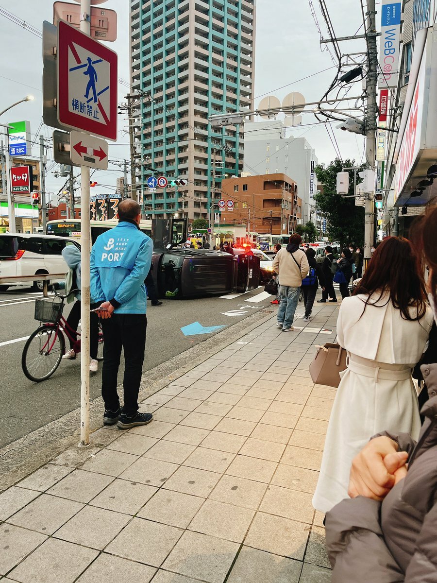 天王寺駅前のジャンカラの前で車ひっくり返ってんだけど!#天王寺