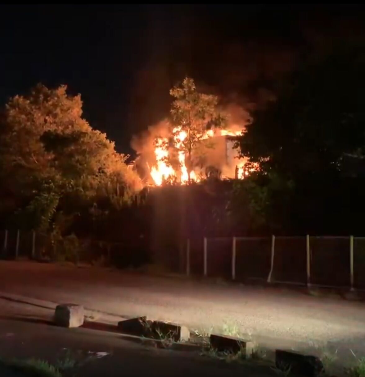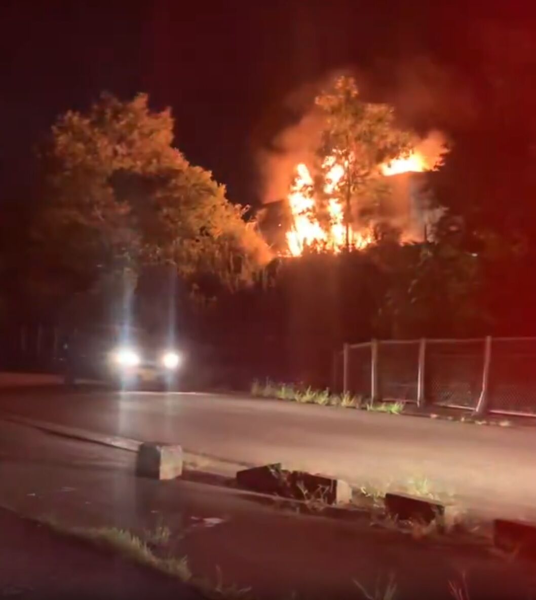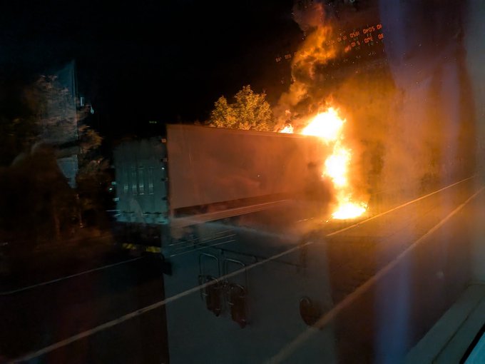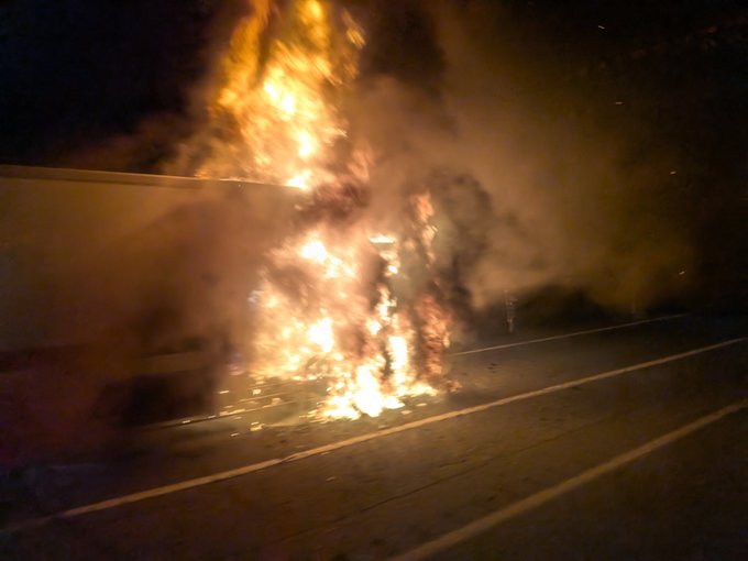 車燃えてるのでそのうち通行止めかなぁ…運転手さん無事だと良いけれど…