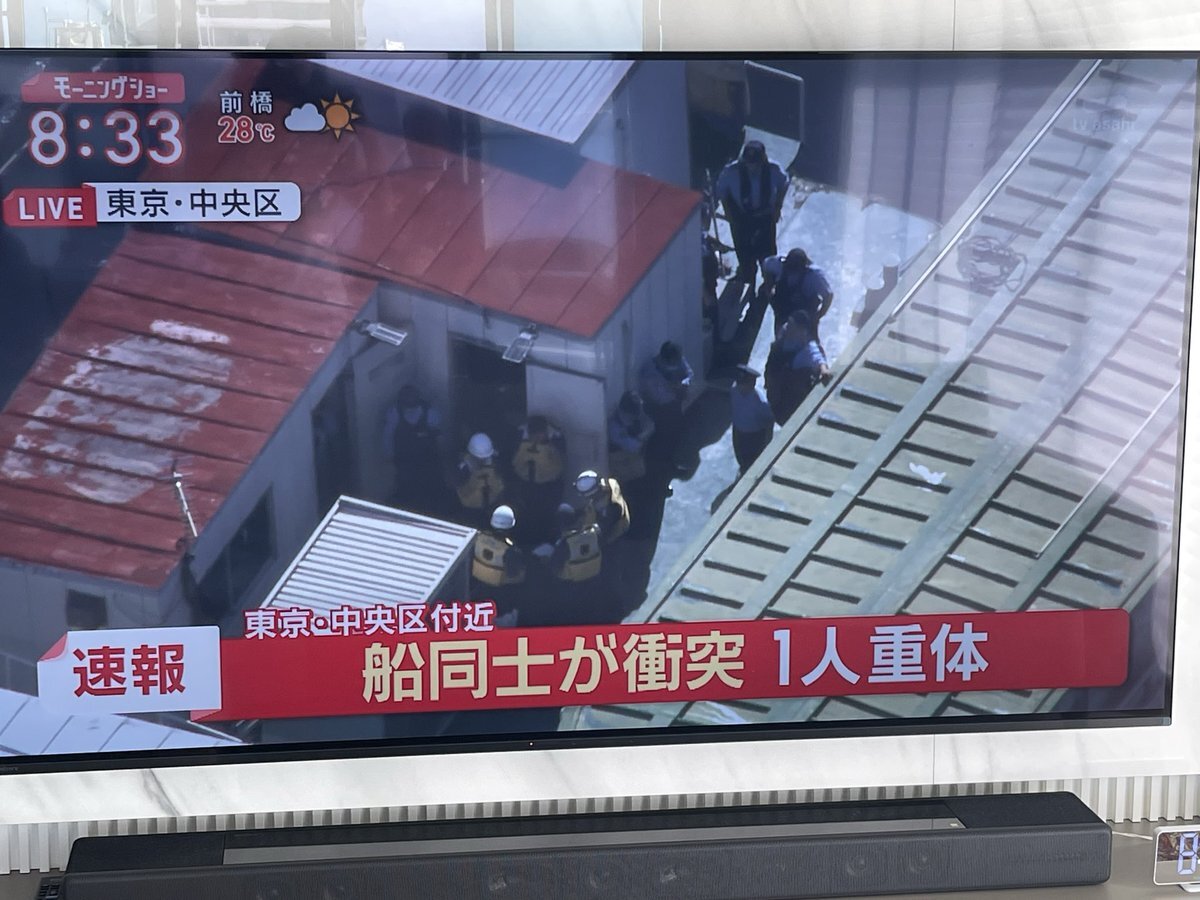 【通報】東京・月島の運河で船同士が正面衝突、乗組員8人搬送 50歳代男性が死亡https://t.co/jZfDUXq9pb