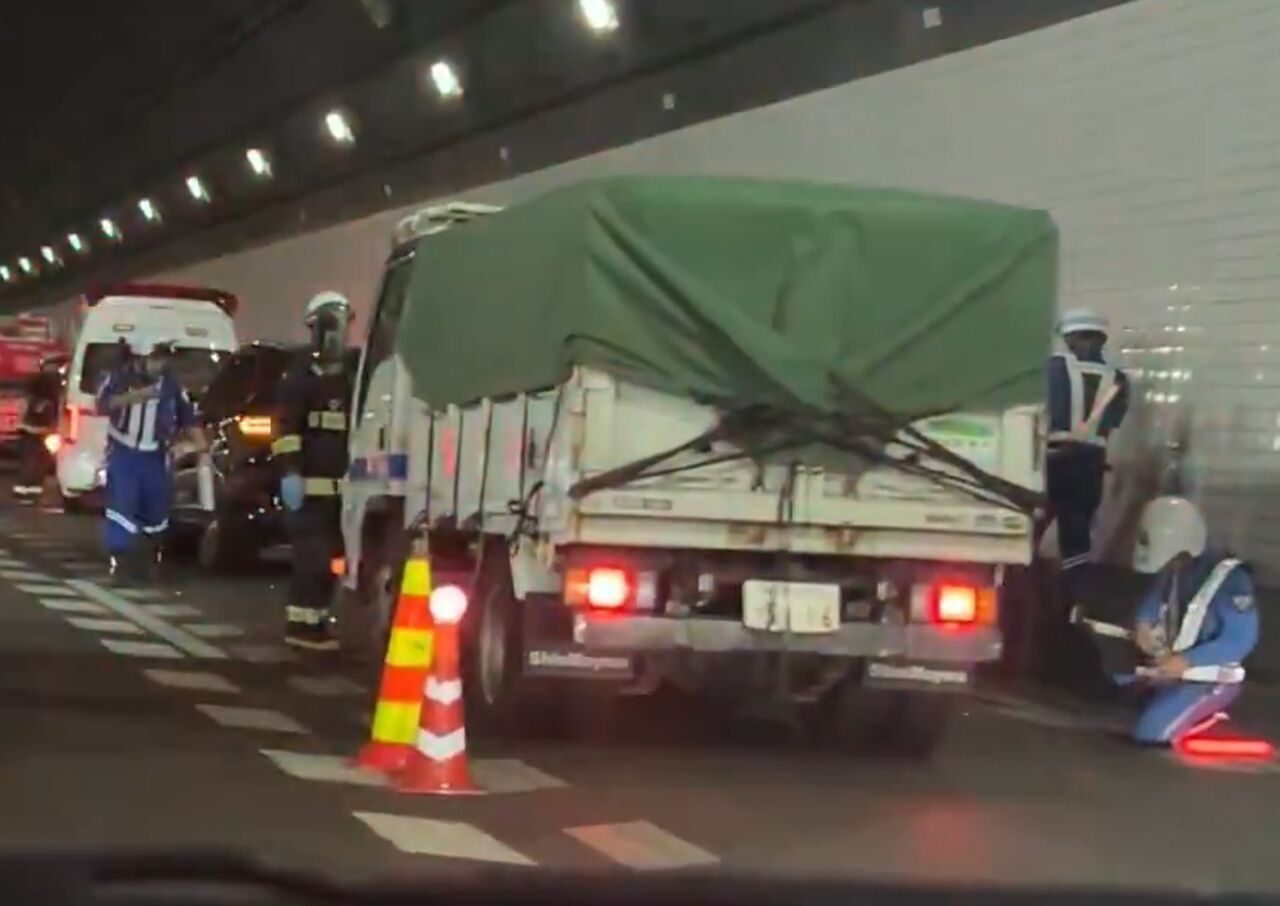 【現場の様子】#交通情報 東京湾アクアライン 上り アクアトンネル付近 トラックや乗用車など4台からむ玉突き事故で規制渋滞10月8日 #アクアライン #木更津 #川崎