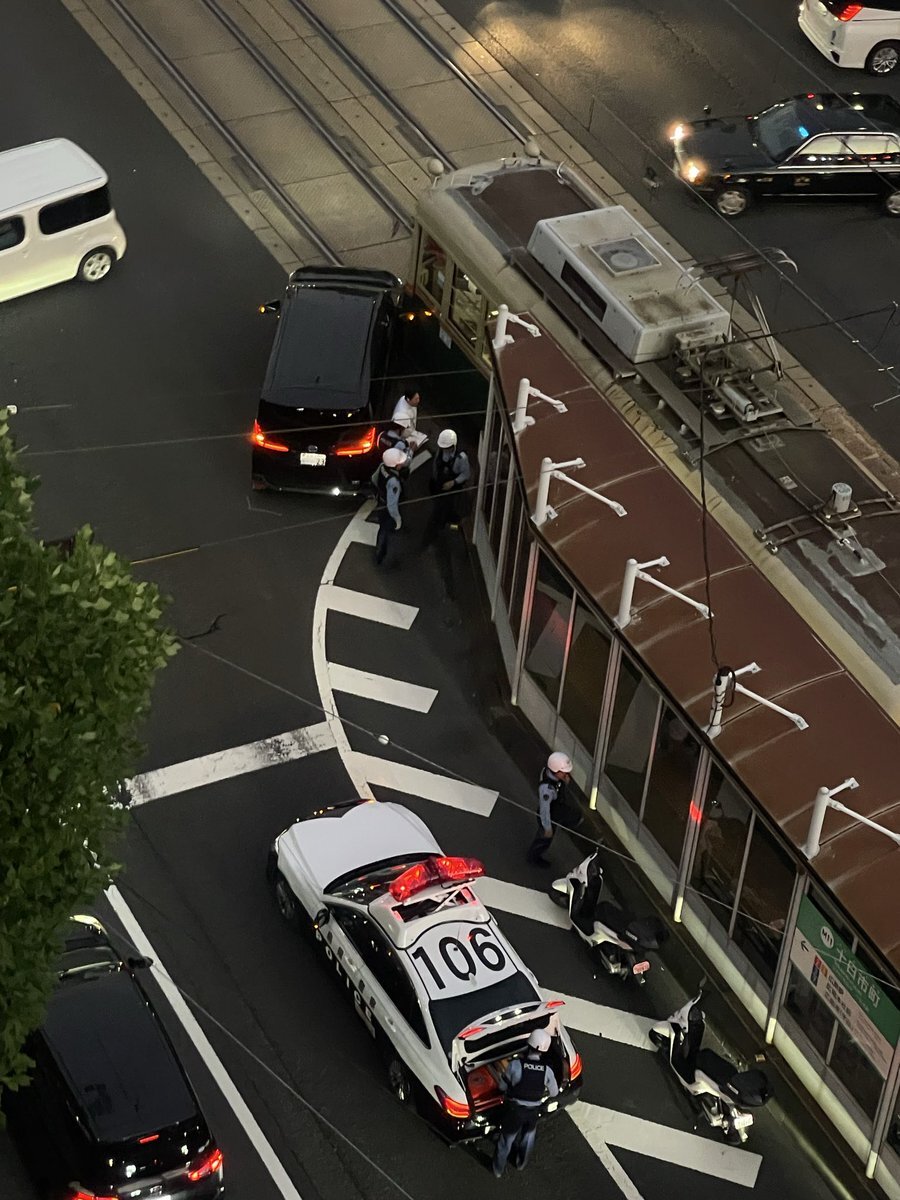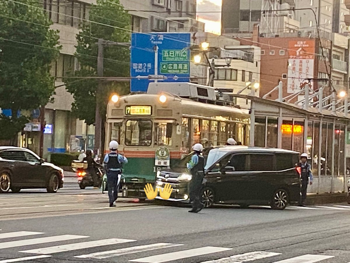 【現場の状況】#交通情報 広島電鉄 十日市町停留場付近 広電とワゴン車の接触事故で一部交通規制10月8日 #広島 #広電