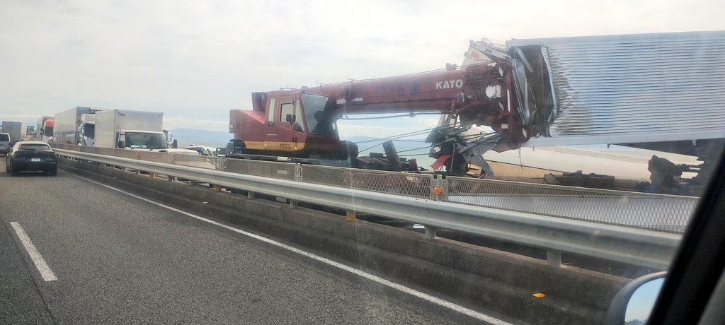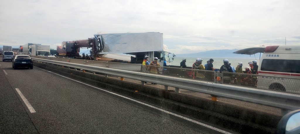 今!事故で通行止め〜第一、二車線ともに封鎖! pic.twitter.com/r7aJrSp2s3