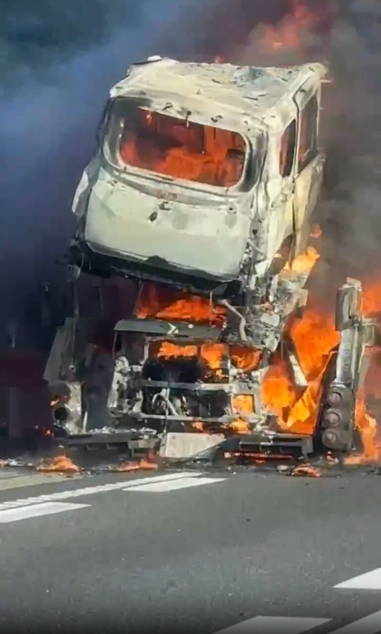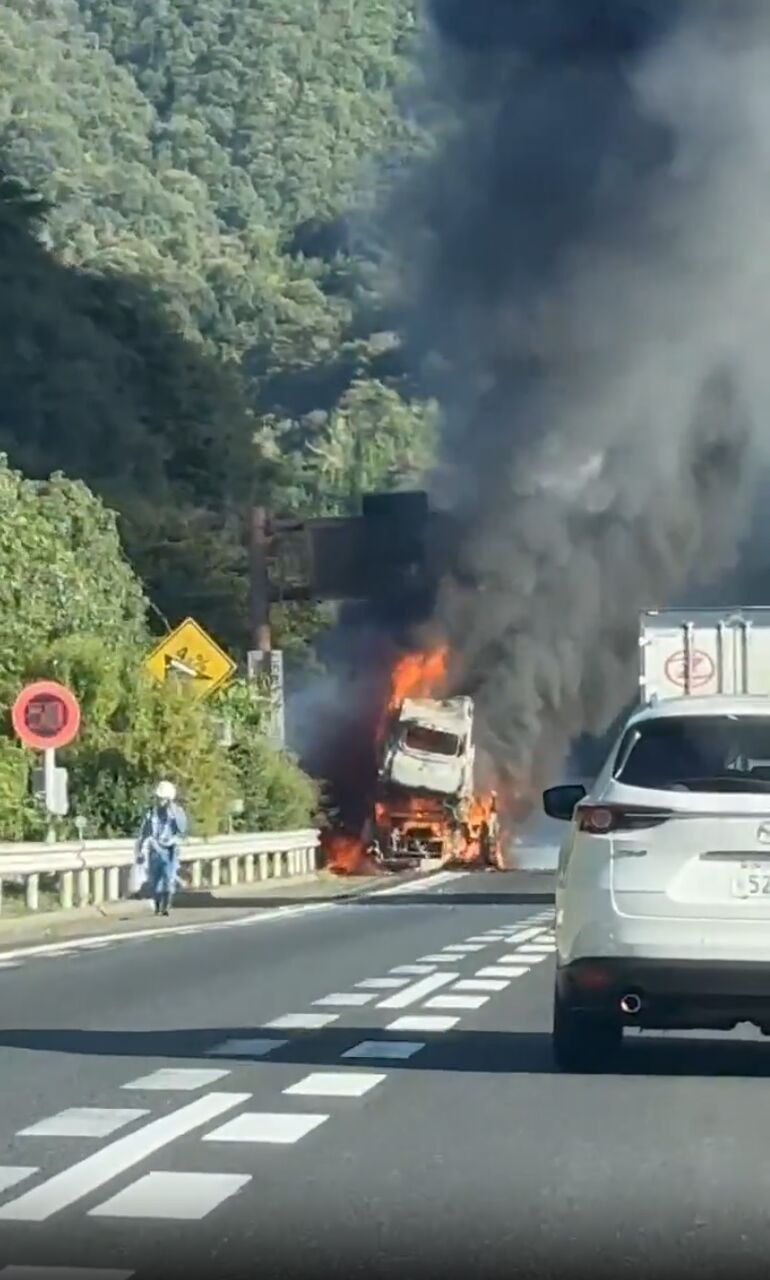 『山陽道で三時過ぎにトラックが燃えてるとのこと😳』