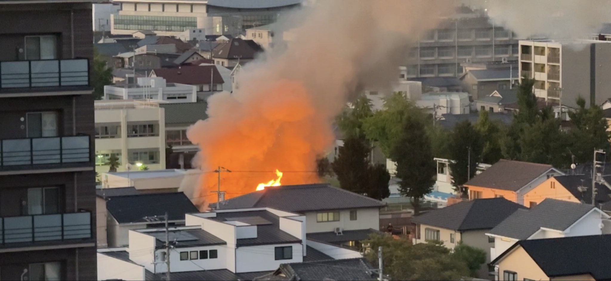 松山市岩崎町2-3付近で火事です🔥凄く燃えてます、、💦 pic.twitter.com/gBH7SJupPP