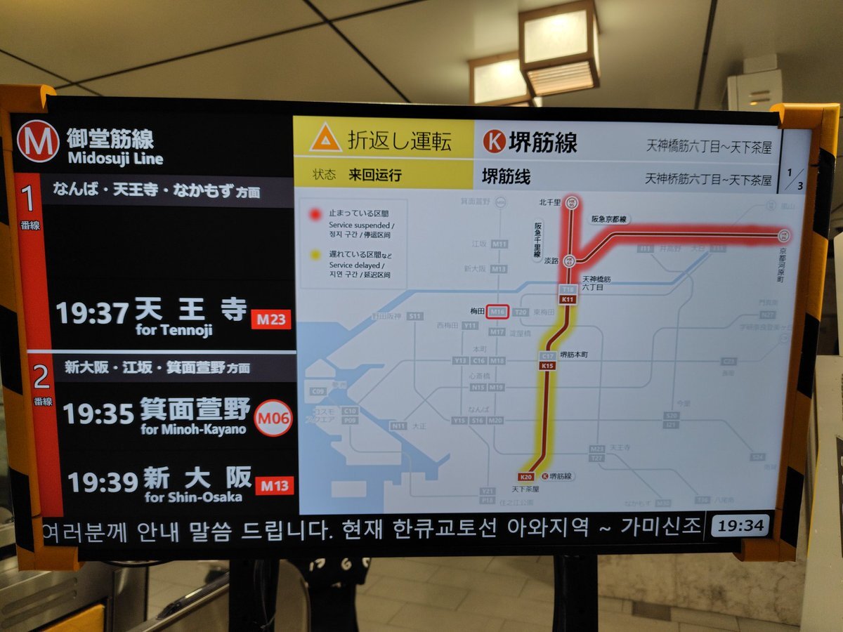 【原因】 人身事故 【影響区間】 北千里 – 天神橋筋六丁目